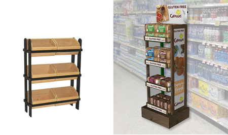 AML Designs manufactures custom wood displays for a more natural look that can also handle heavier products.