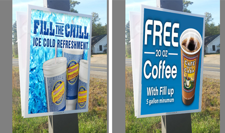 AML Designs creates pump media signage that is custom designed to attract customer to come into your store while they’re waiting at the pump.